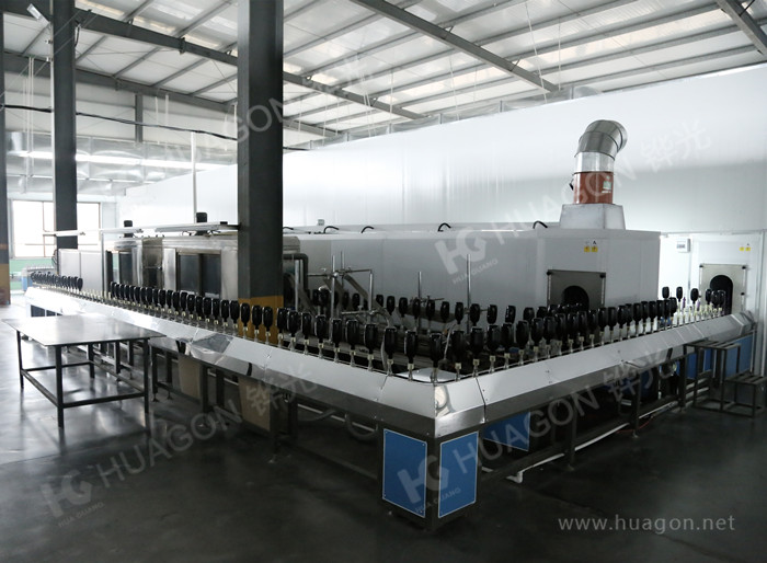 噴涂:上料-素材預(yù)熱-自動(dòng)靜電毛刷除塵-自動(dòng)噴涂1(底漆)-預(yù)熱- 自動(dòng)噴涂2(中涂)-預(yù)熱-自動(dòng)噴涂2(面涂)-靜置流平-烘烤固化-冷卻-下料 - 適用產(chǎn)品: