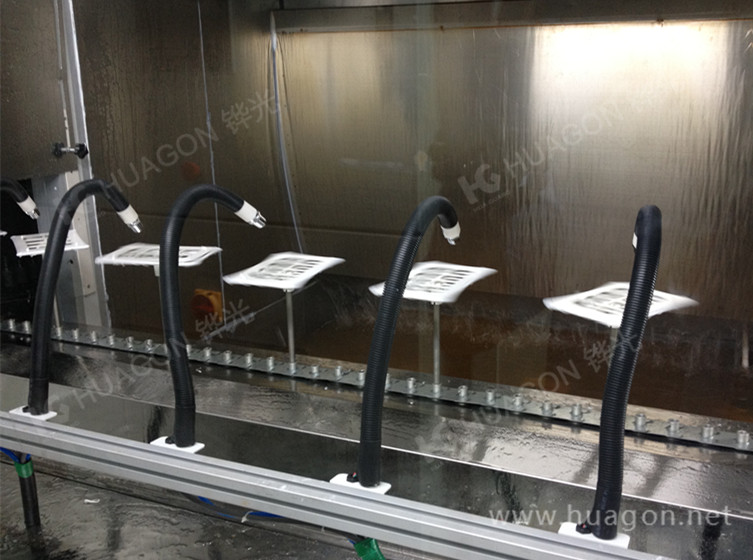 1.上料-手動(dòng)靜電除塵-素材預(yù)熱-自動(dòng)靜電除塵-自動(dòng)噴涂-烘烤-冷卻-下料(拆分成三條一涂一烤線) 2.上料-手動(dòng)除塵-素材預(yù)熱-自動(dòng)除塵-自動(dòng)噴底-烘烤-自動(dòng)噴普通面-冷卻-下料(合并成兩涂兩烤) 3.上料-手動(dòng)除塵-素材預(yù)熱-自動(dòng)除塵-自動(dòng)噴底-烘烤-自動(dòng)噴中漆-烘烤-自動(dòng)噴面-冷卻-下料(合并成三涂三烤) 4.上料-手動(dòng)靜電除塵-素材預(yù)熱-自動(dòng)靜電除塵-自動(dòng)噴-IR-UV光固化-冷卻-下料(單獨(dú)面漆)